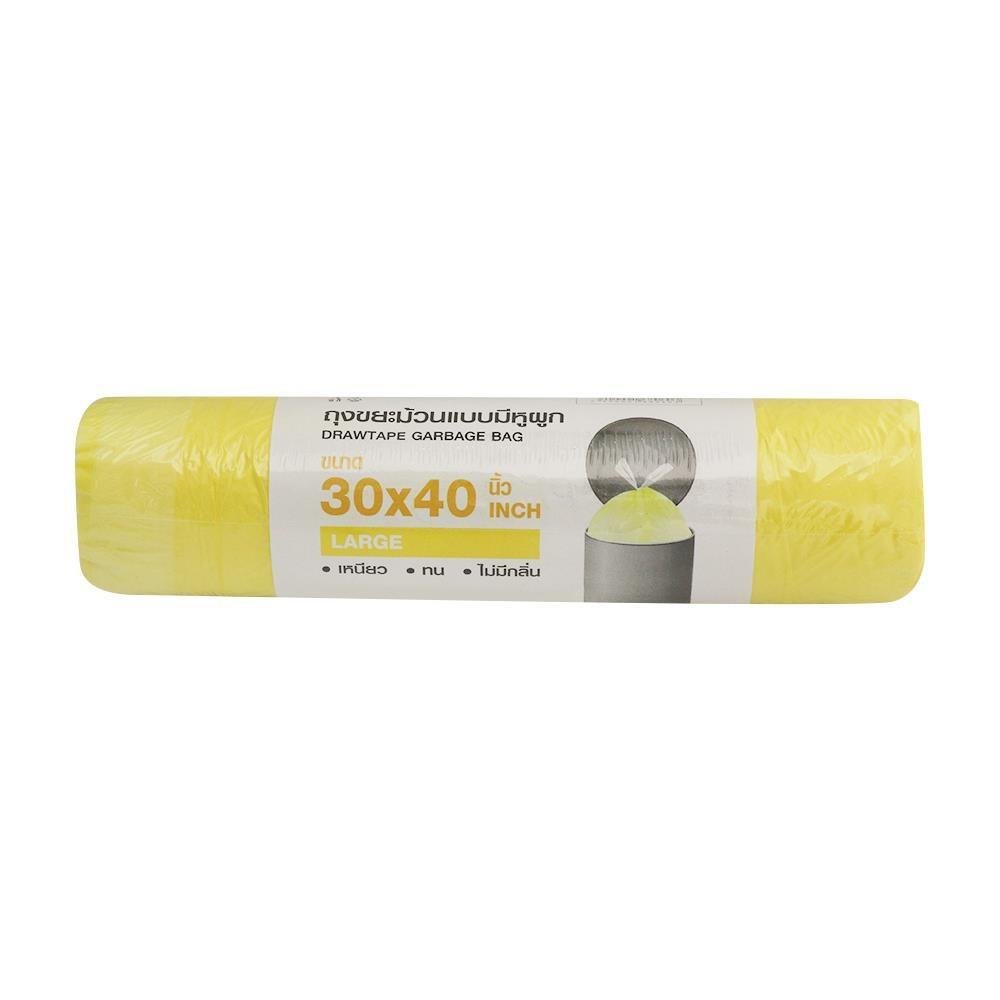 Designed for larger waste management needs, the Garbage Bags Roll With Rope Acco 30X40″ 10Pcs Yellow combines strength, capacity, and ease of use. Each bag is made from thick, puncture-resistant plastic to handle heavy or bulky trash without tearing. The integrated rope tie allows secure sealing to contain odors and prevent spills during disposal. Its generous 30×40″ size fits large bins, making it perfect for households, commercial kitchens, or event clean-ups. The bright yellow color enhances visibility and can be used to designate specific waste categories. Supplied in a convenient 10-piece roll for simple dispensing and space-saving storage.CHAR(10)Large-sized yellow rope-tie bags ideal for heavier loads.