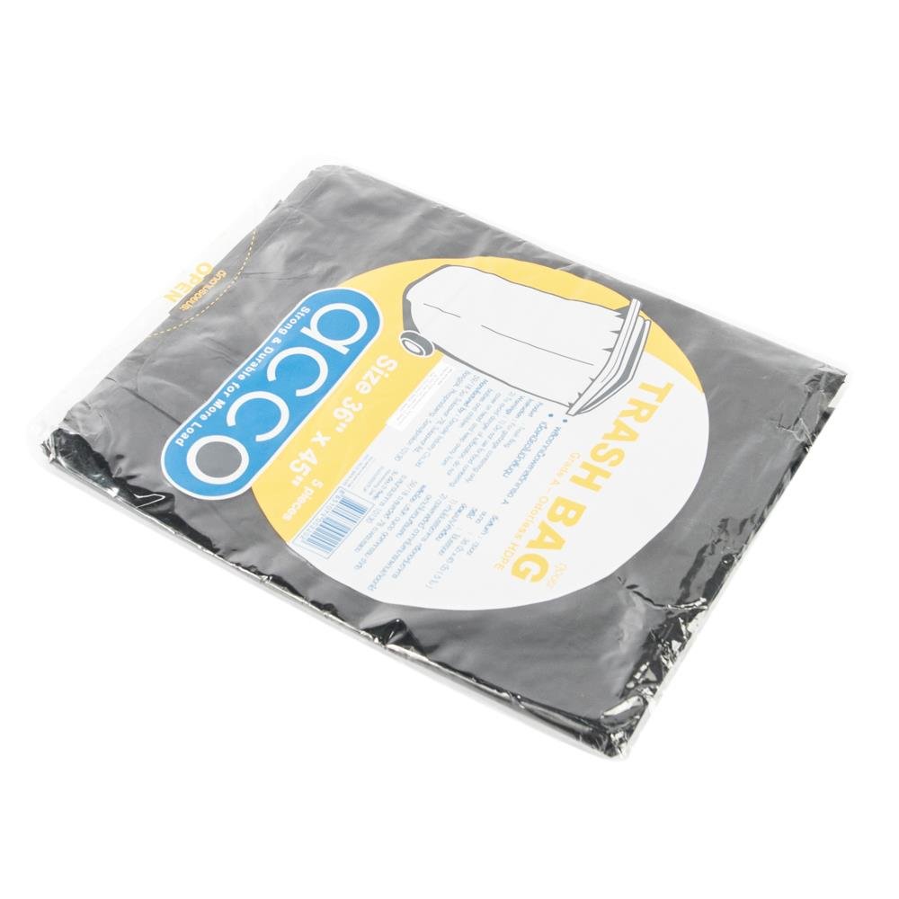 The Garbage Bags Thin Acco 36×45″ 5Pcs Black are large-capacity waste bags suitable for handling bulky or high-volume trash. Made from lightweight yet reliable plastic, they are ideal for cleaning up after events, handling garden waste, or managing household garbage. Their 36×45-inch size accommodates large bins, while the black color conceals contents for a neater appearance. These bags are easy to tie and dispose of, providing a simple and effective solution for big clean-up tasks while ensuring durability and convenience.CHAR(10)Extra-large size for bulkier trash, strong and tear-resistant.