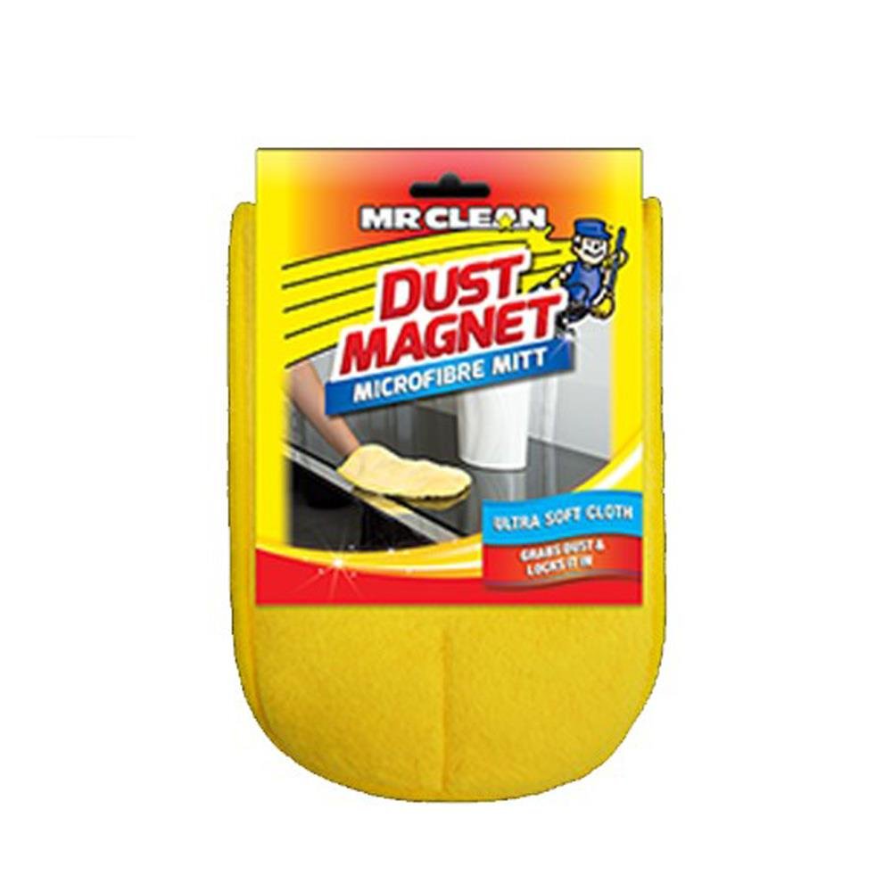 The Mr Clean Microfibre Dust Magnet Mitt Abmh003 is designed for effortless dusting with maximum efficiency. Worn like a glove, it allows you to clean hard-to-reach areas, intricate surfaces, and delicate items with ease. Its dense microfiber strands attract and trap dust, pollen, and pet hair like a magnet, reducing airborne particles during cleaning. Ideal for use on furniture, blinds, car interiors, and electronics, it offers a scratch-free clean without chemicals. Lightweight and comfortable, this mitt is reusable and machine washable, providing a sustainable cleaning solution that combines convenience, performance, and environmental friendliness in one practical product.CHAR(10)Mitt-style microfiber duster that traps and holds dust easily.