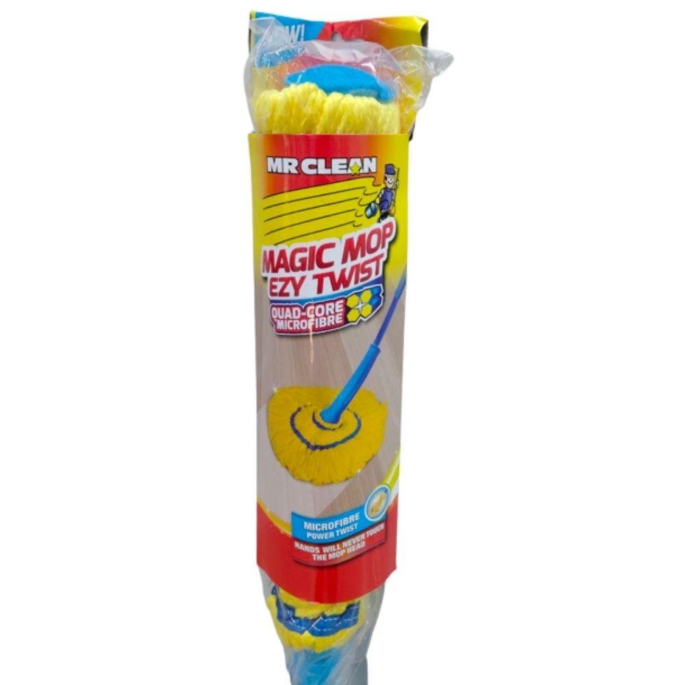 The Mr Clean Microfibre Ezy Twist Mop With Handle offers effortless cleaning with its advanced twisting mechanism that wrings out excess water without getting your hands wet. The soft yet durable microfiber head effectively traps dust, dirt, and grime, making it ideal for both wet and dry cleaning. Its lightweight handle ensures easy maneuverability, reducing strain during extended use. Suitable for a variety of surfaces including tile, laminate, and hardwood, this mop provides a streak-free finish. The replaceable mop head extends its lifespan, while its slim design allows for convenient storage in small spaces after use.CHAR(10)Twist mop with microfiber head for deep cleaning and easy wringing.
